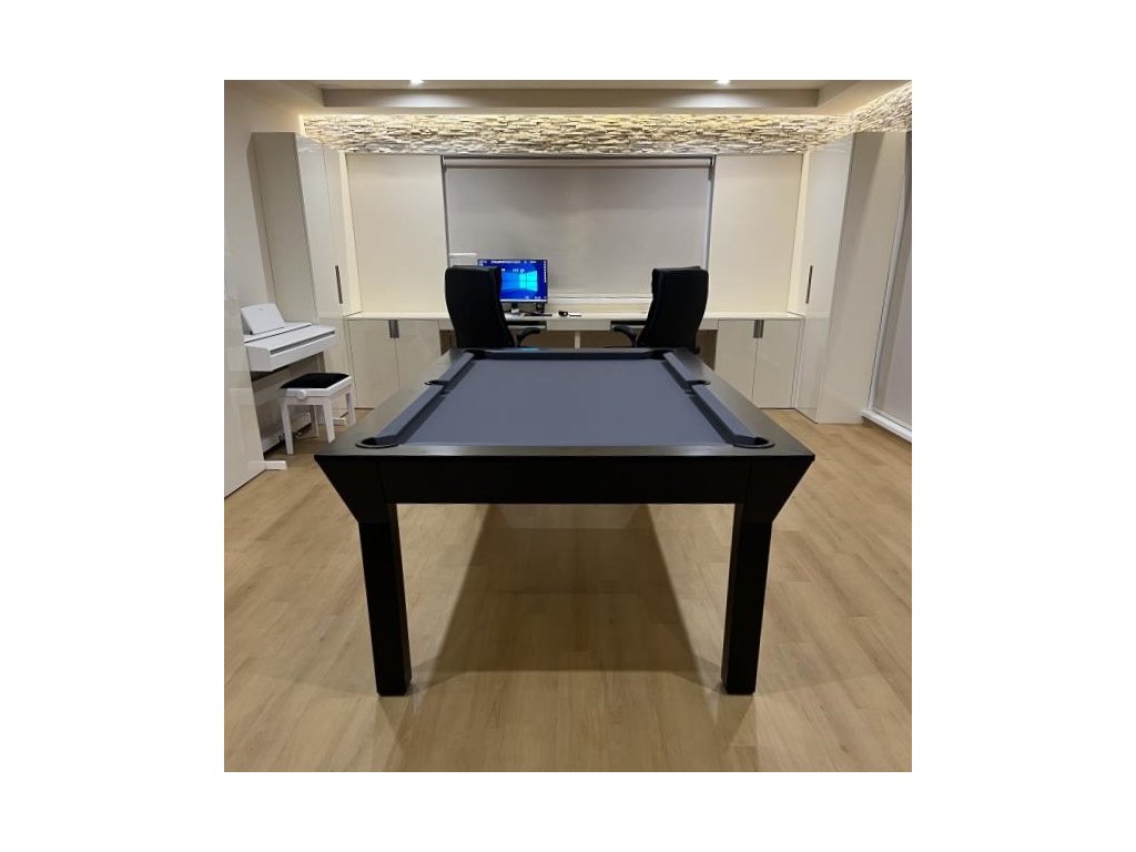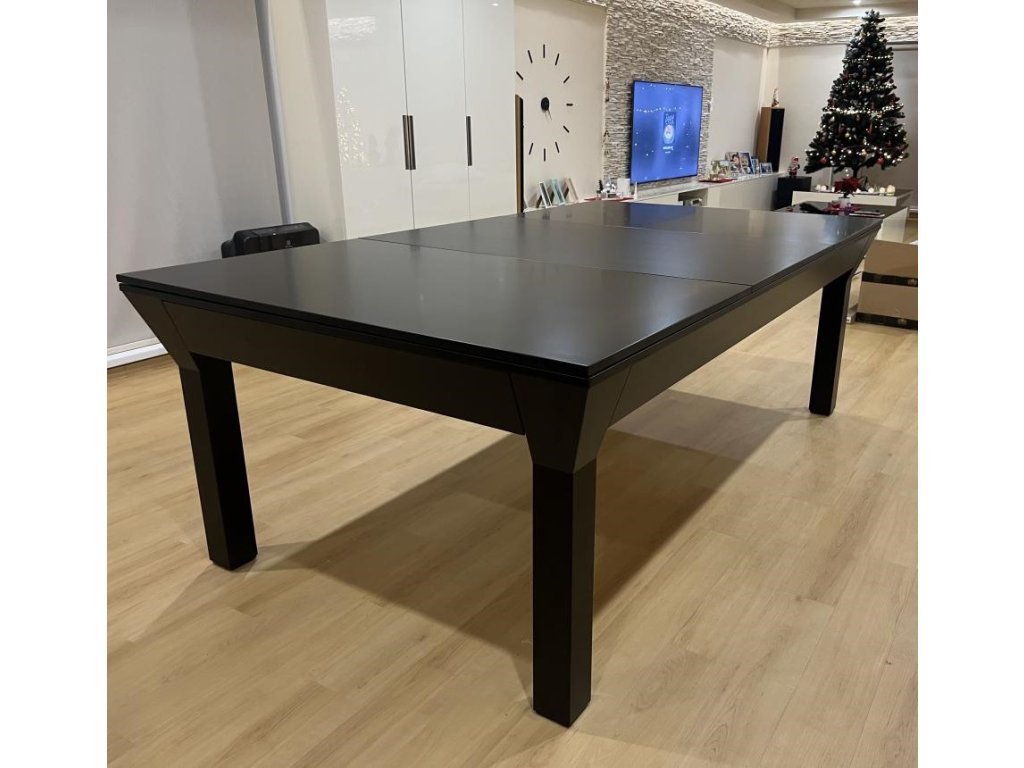 Díky krycí desce, lze z kulečníku velmi rychle a jednoduše udělat klasický stůl. Třídílnou krycí desku lze umístit pod stůl na praktické výklopné držáky.
