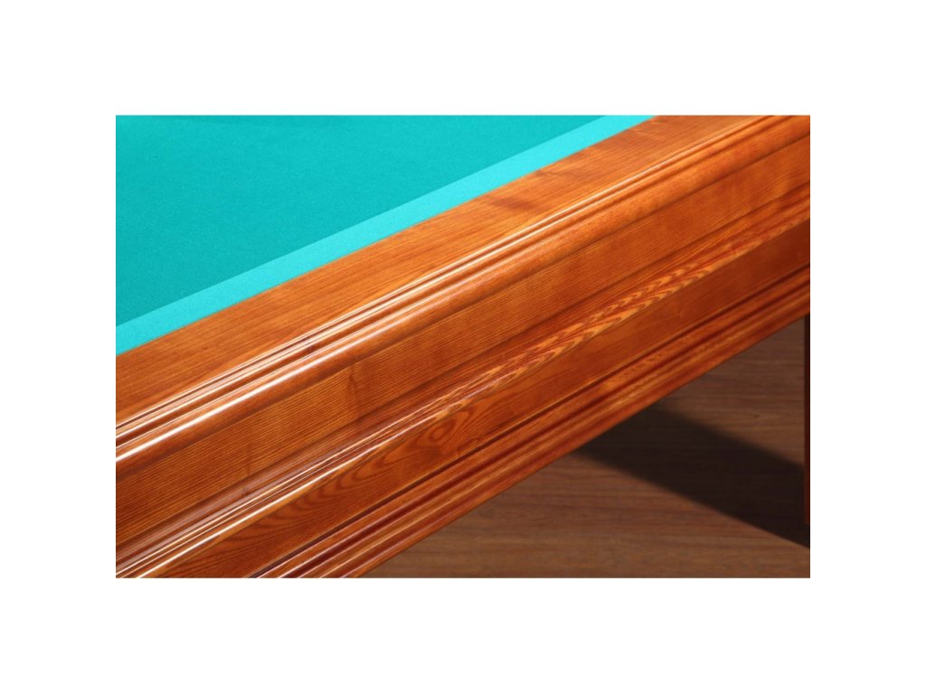 - Masivní stůl z javoru s plastickou povrchovou úpravou a designem ořechového dřeva a masivní konstrukcí. Korpus stolu je celý z javorového dřeva a má velmi stabilní konstrukci pro uložení pětidílné 45 mm silné břidlicové desky. Kožené kapsy jsou v barvě stolu. Barva plátna standartně zelená, odstín lze změnit dle vzorníku. Stůl bude jistě ozdobou každého interiéru. Kvalitní herní zážitek nejen pro všechny hráče.